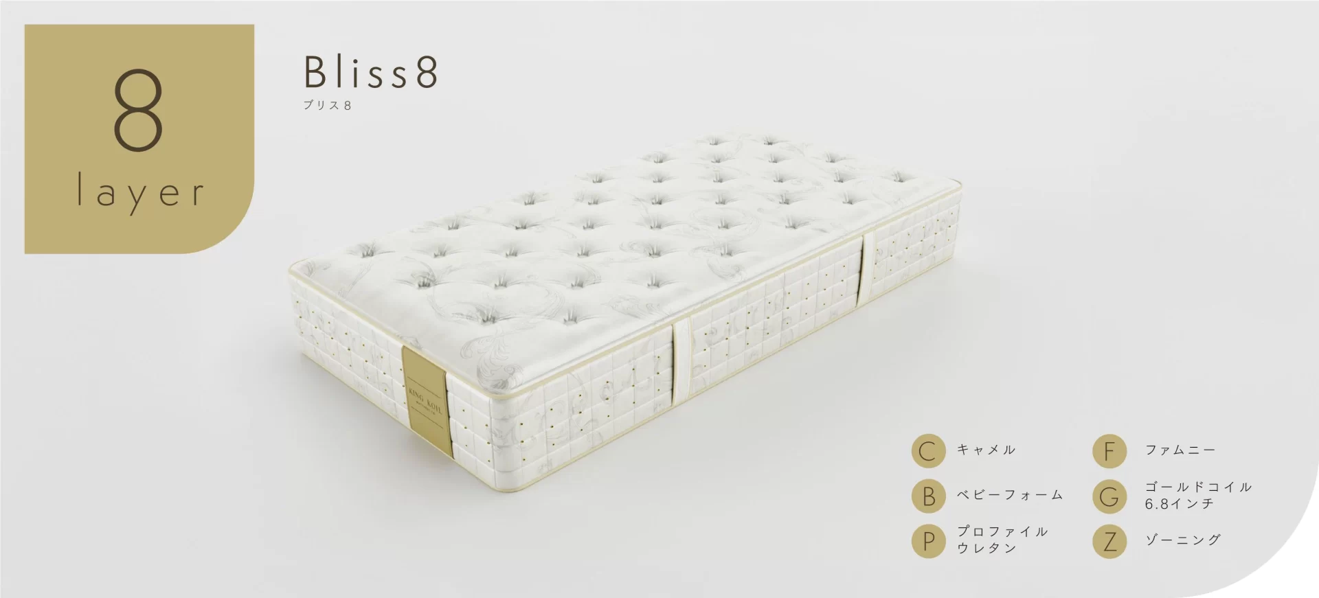 上質な「天然素材」と機能的な「ウェルネス素材」を重ねあわせた独自のレイヤー構造を採用することで、直感的な心地よさと、確かな機能性を両立させています。「Nature & Wellness」は、KING KOIL が素材へ込めたこだわりです。